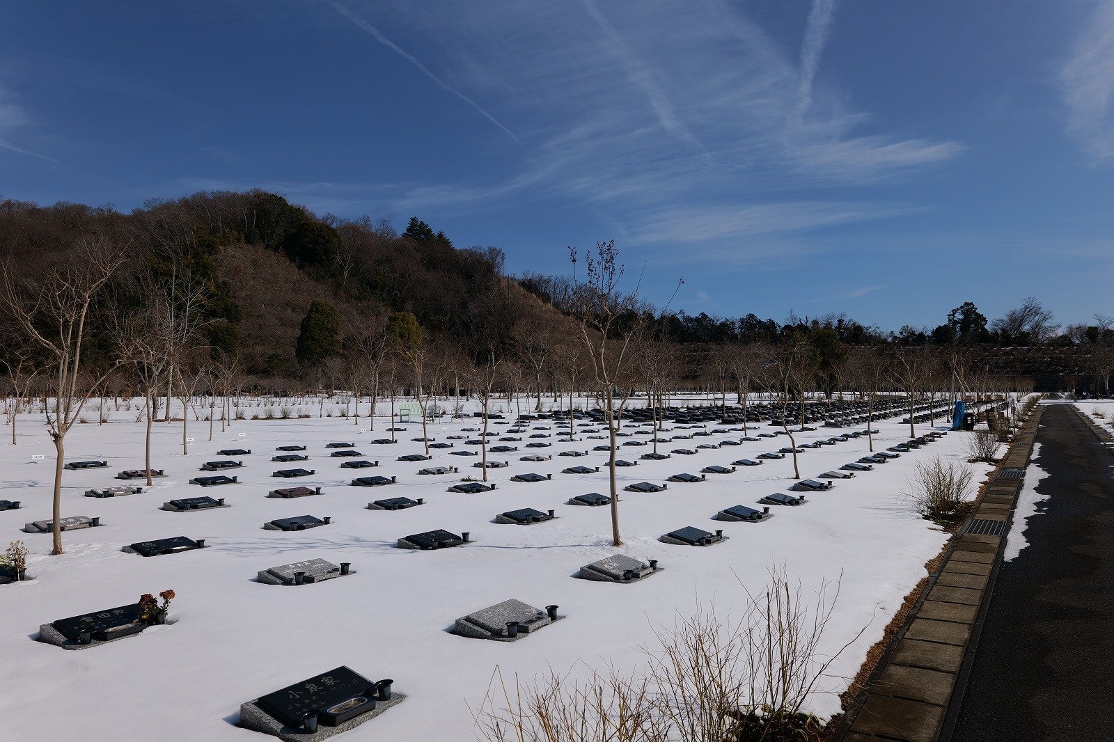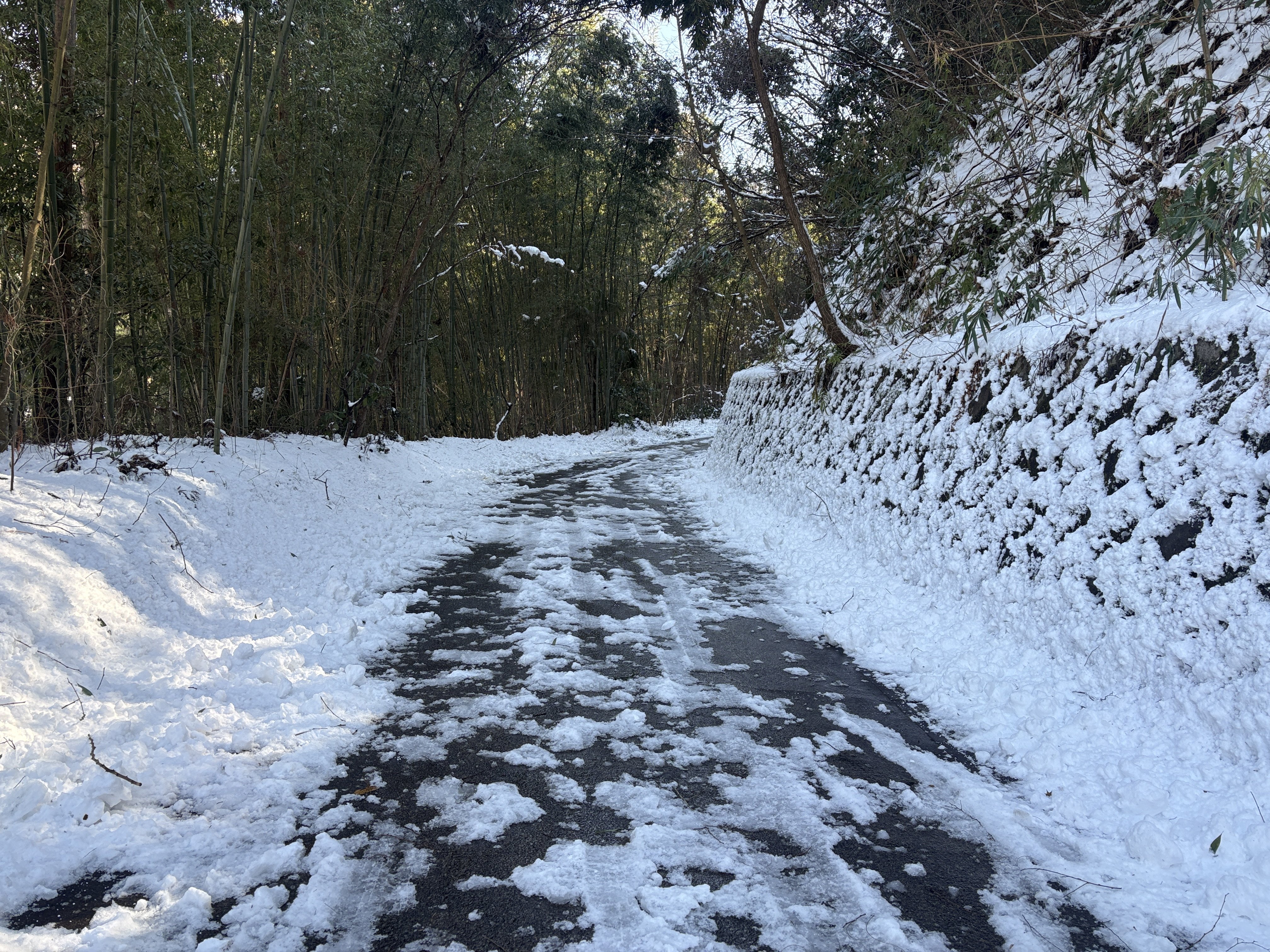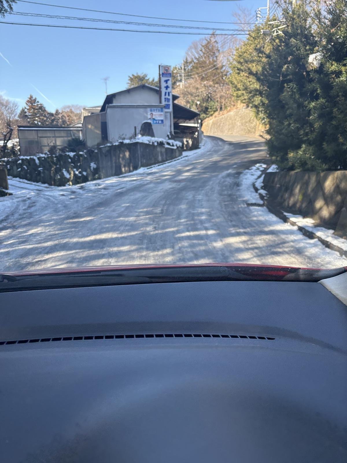 霊園への道路は、震生湖・中井パーキング側ともにアイスバーンがある状態です。